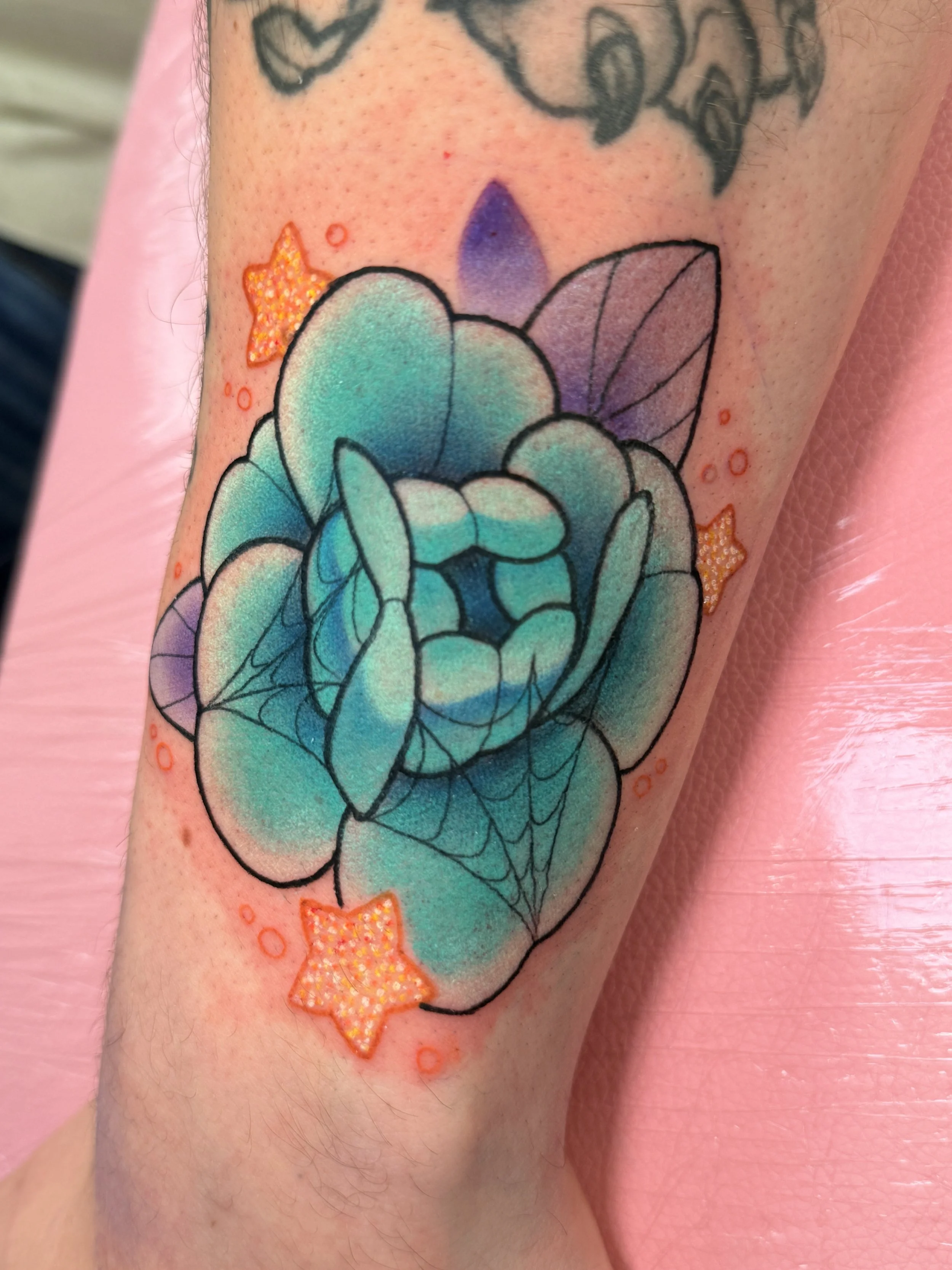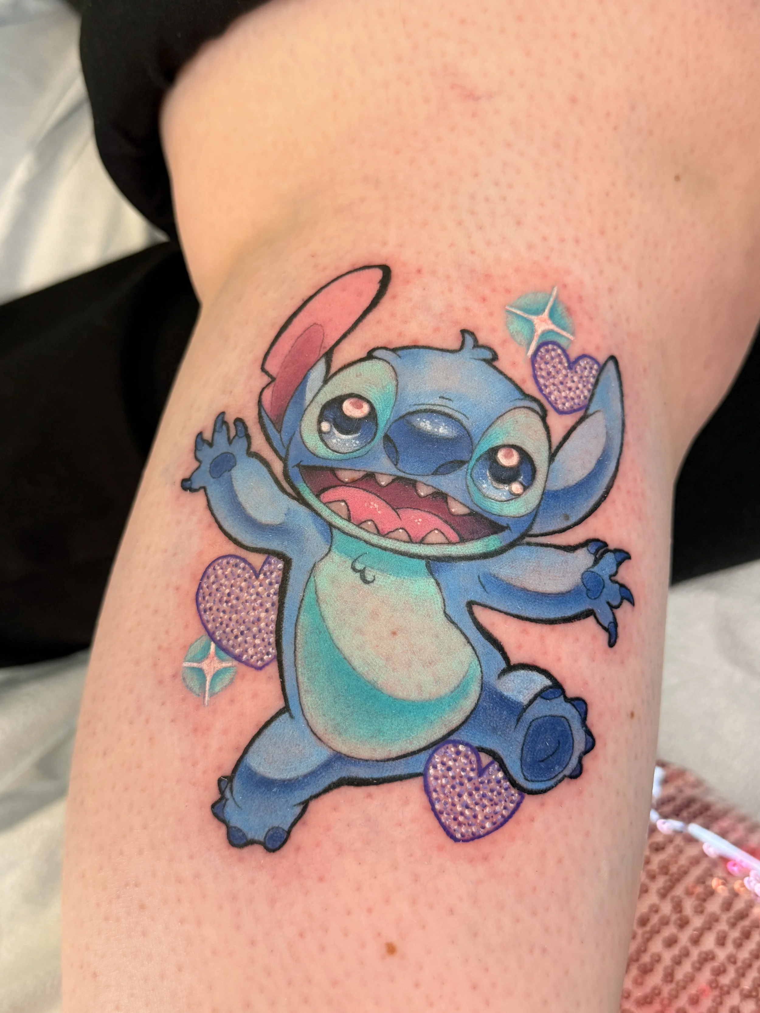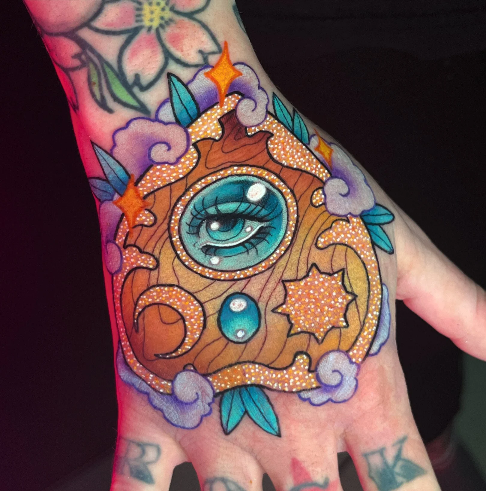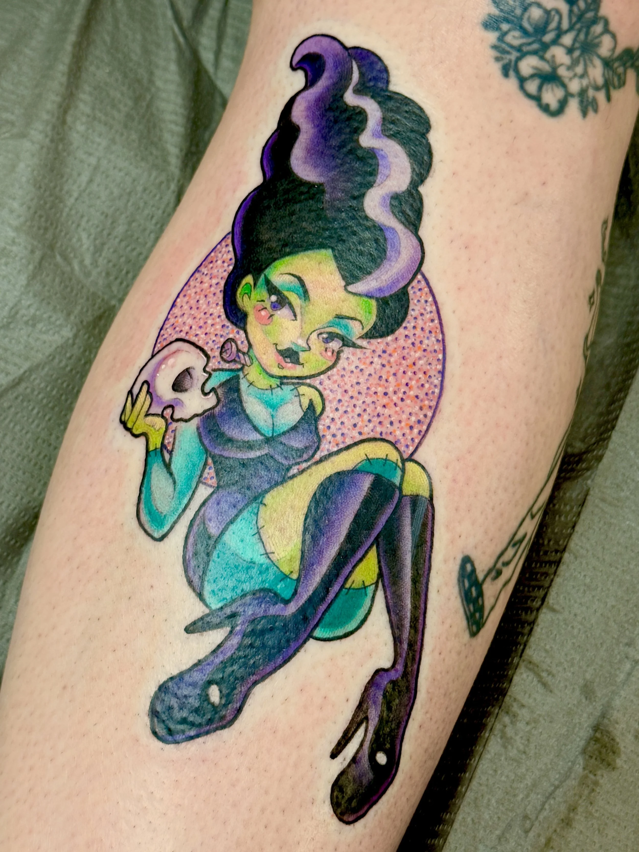 Whether you’re dreaming of a neon-bright neotrad piece or a soft watercolor moment, Skye specializes in high-impact color and all things sparkly.